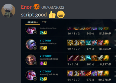 We upload many videos of our LoL Script on Youtube & Tiktok. Check out our Discord for gameplays to see it in action or ask help from other users.